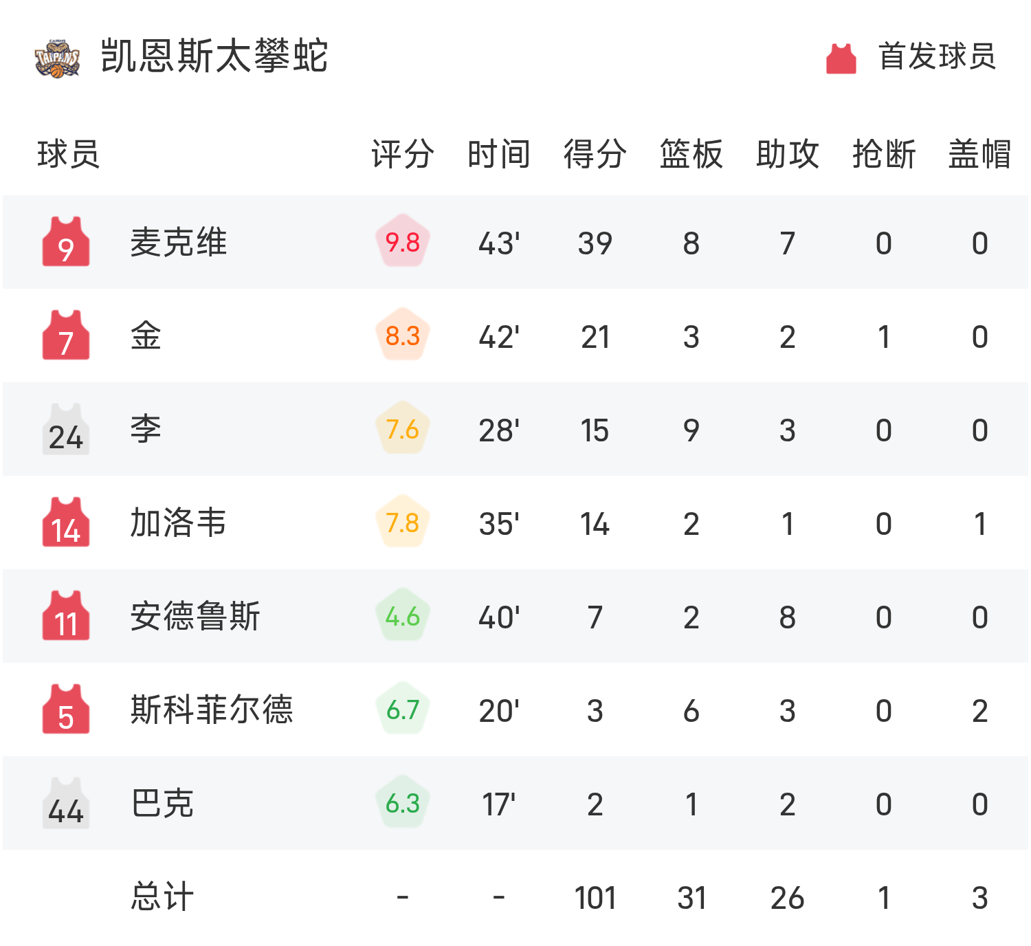 ในตอนท้ายของเกม ผู้เล่น 36 คนของแอดิเลดเอาชนะแคร์นส์ ไทปัน สเนคส์ 105-101