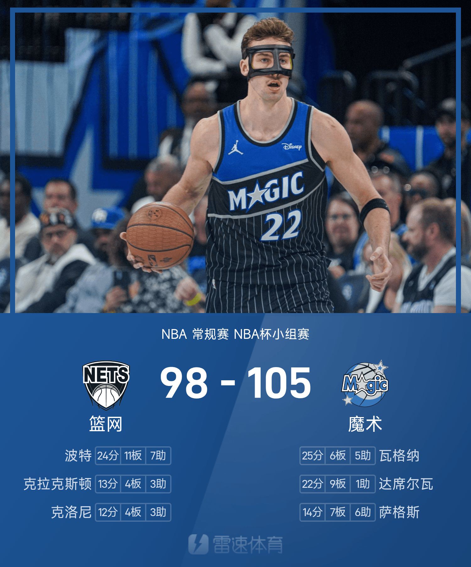 วากเนอร์ตัวน้อยทำคะแนนสูงสุดในเกม 25 แต้ม บวก 6 รีบาวน์และ 5 แอสซิสต์ และสามพอยน์เตอร์สองตัวในนาทีสุดท้ายเพื่อจบเกม