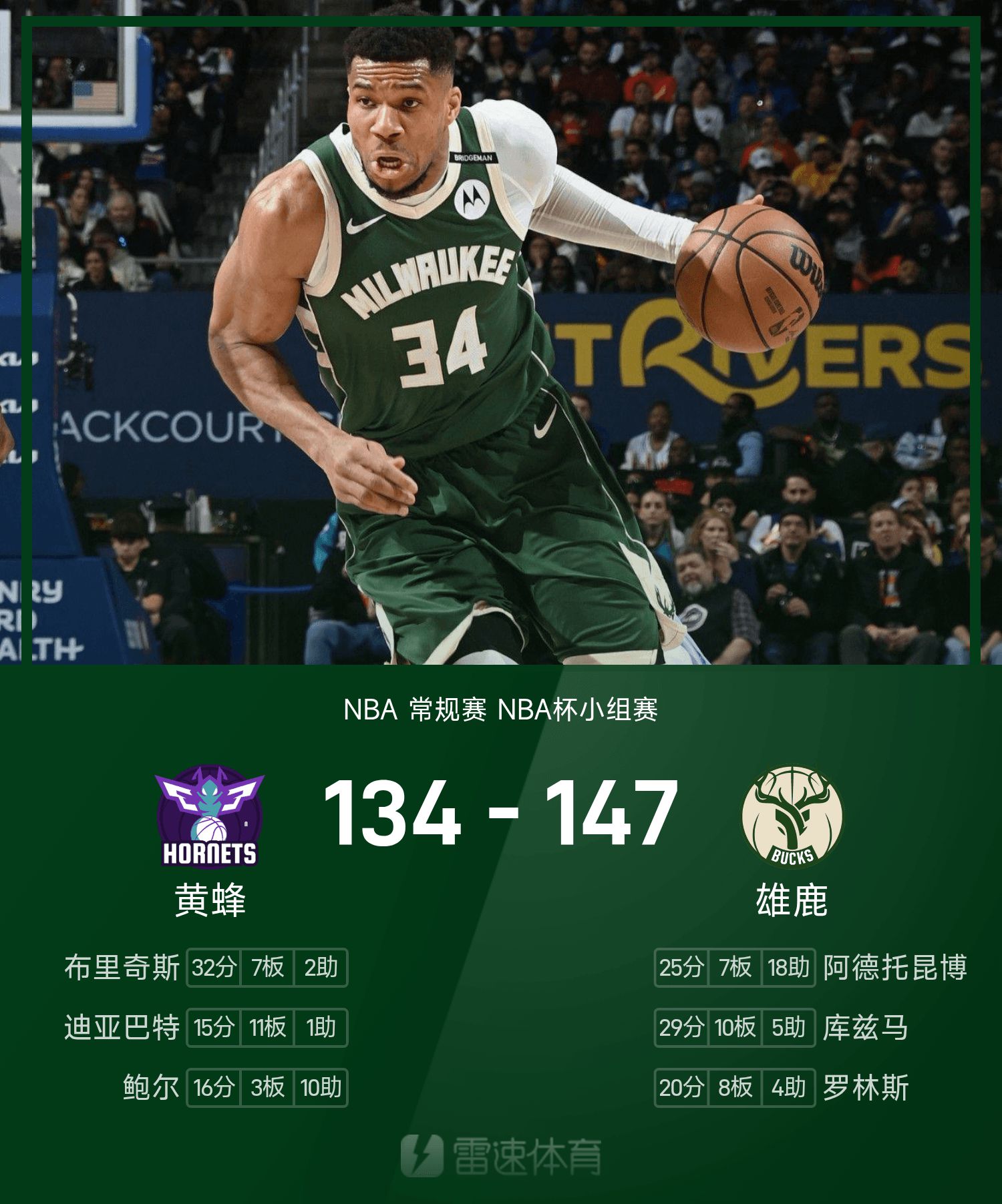 การเชื่อมทีมเข้าด้วยกัน อันเทโทคูมโป นำทีมคว้าชัยชนะต่อเวลาเหนือแตนแตนด้วย 25 แต้ม 7 รีบาวน์ และ 18 แอสซิสต์ บริดเจสทำไป 32 แต้ม 7 รีบาวด์ 2 แอสซิสต์