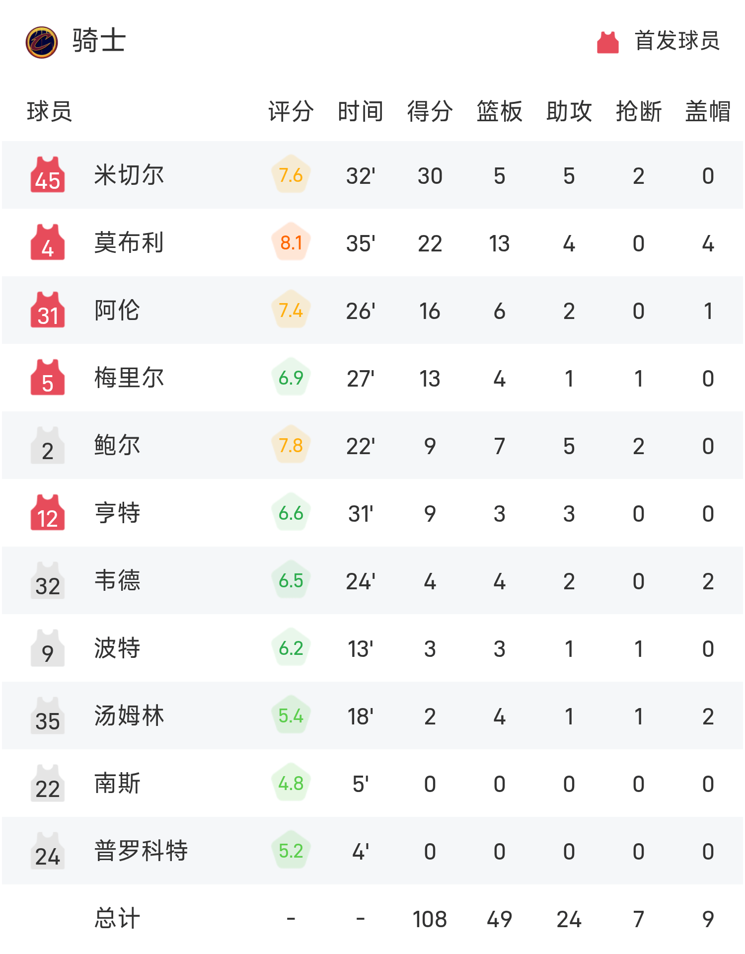 รายงานการดวล NBA: มิทเชล 30+5+5 คาวาเลียร์ส พลิกกลับ กริซลี่ส์ 108-100