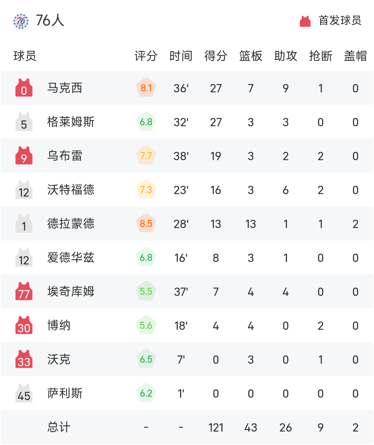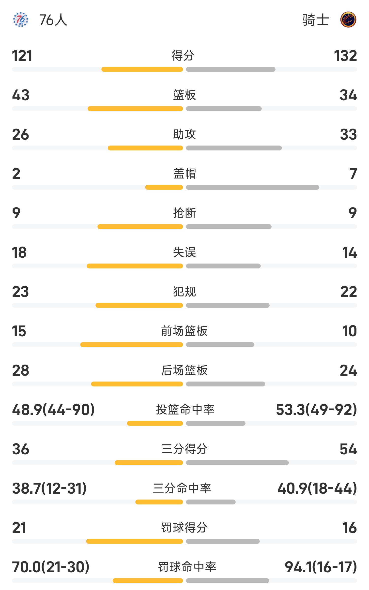 หลังจากที่ทั้งสองฝ่ายต่อสู้กัน คาวาเลียร์สเอาชนะเซเว่นตี้ซิกเซอร์ส 132-121