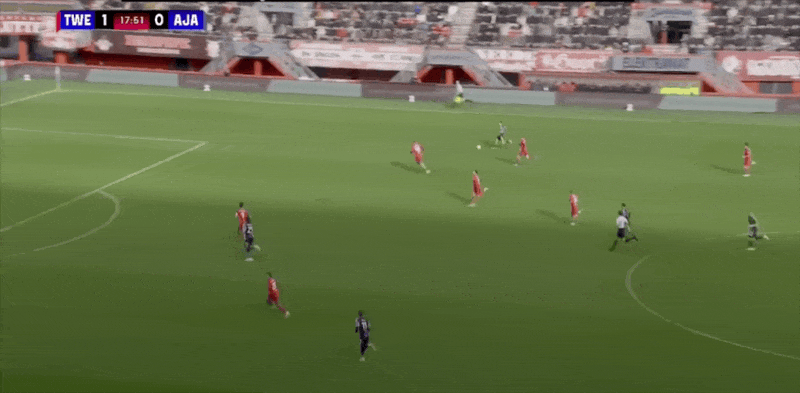 18' เวอร์ฮอสต์หันกลับมาและเลี้ยงบอลในโซนสามวินาทีแล้วยิงประตูแรกของเกมให้อาแจ็กซ์