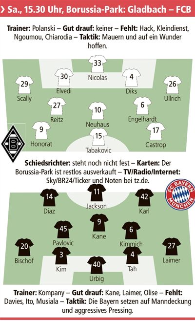 รายชื่อตัวจริงที่คาดการณ์ของมึนเช่นกลัดบัค