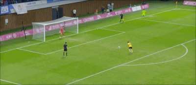 19' จงเหวิน หันกลับมาและเลี้ยงบอลในโซนสามวินาทีแล้ววอลเลย์ และบอลพลาดเป้า