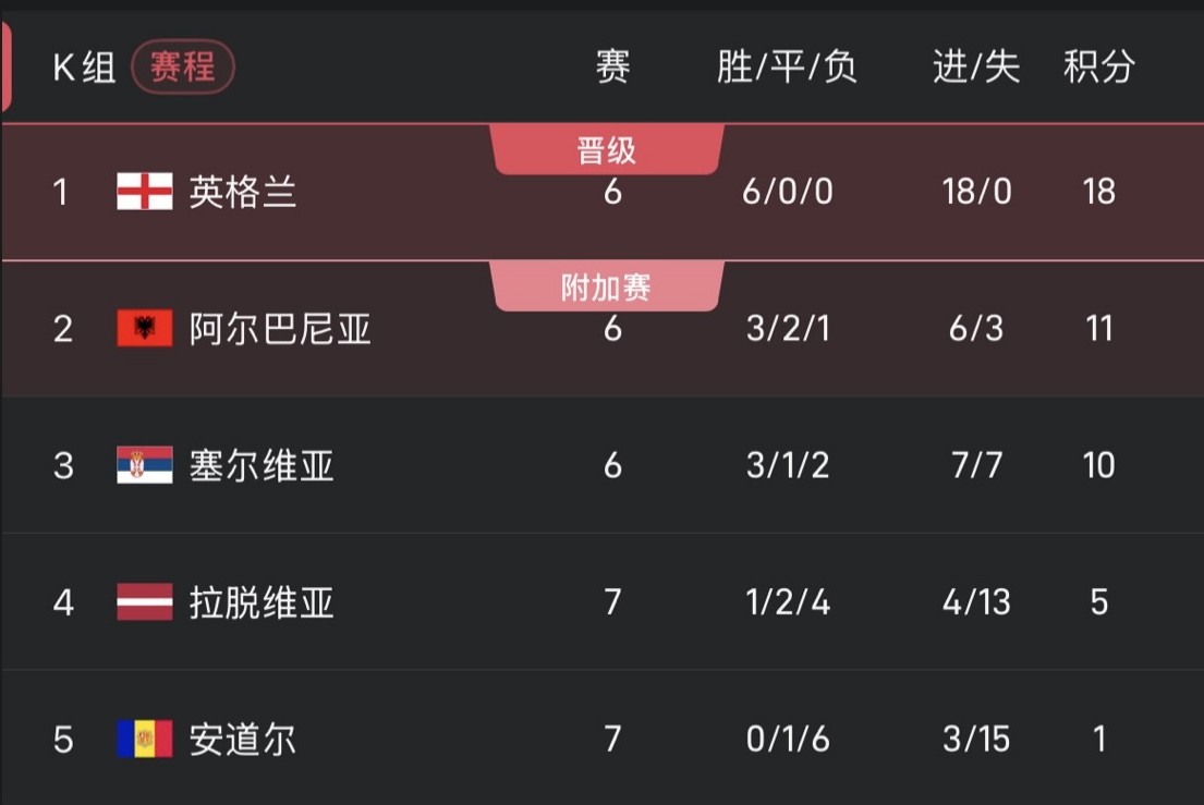 อังกฤษรักษาตำแหน่งจ่าฝูงล่วงหน้าของกลุ่มไว้ได้ แอลเบเนียและเซอร์เบียจะแข่งขันกันเพื่อชิงอันดับสองในกลุ่ม
