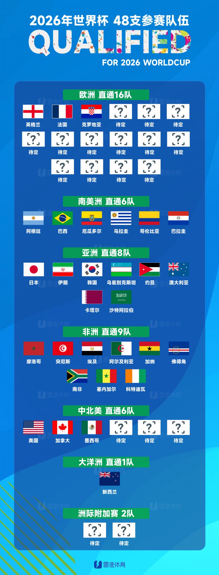 9 ที่นั่งในแอฟริกา: โมร็อกโก ตูนิเซีย อียิปต์ แอลจีเรีย กานา เคปเวิร์ด แอฟริกาใต้ เซเนกัล โกตดิวัวร์