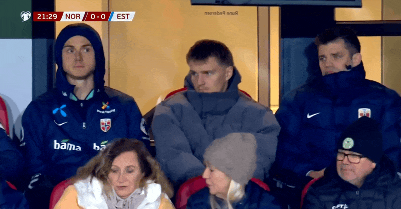 การถ่ายทอดนาทีที่ 22 พบโอเดการ์ด กองกลางชาวนอร์เวย์ ที่ไม่ได้อยู่บนอัฒจันทร์เนื่องจากอาการบาดเจ็บและดูเกม