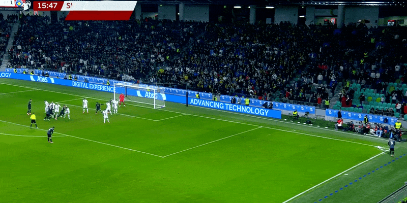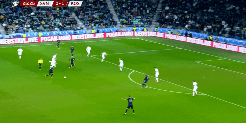 11'กองหลังโคโซโวทำผิดพลาดในการเคลียร์บอล และลูกยิงของวิโปตนิกถูกบล็อก