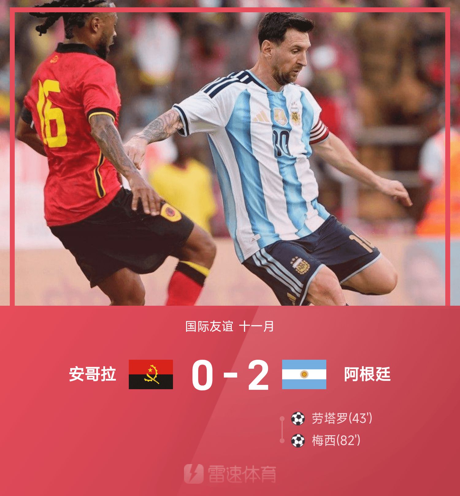 81' เมสซียิงประตูด้วยการวอลเลย์อันทรงพลังจากด้านซ้ายภายในพื้นที่สามวินาที และอาร์เจนตินานำแองโกลา 2-0 ชั่วคราว