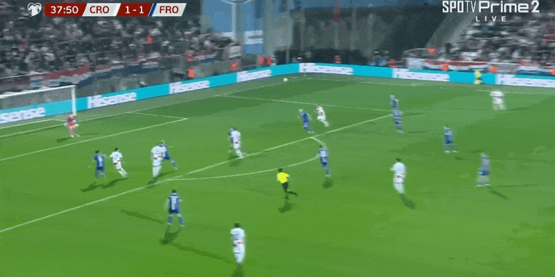 39' โมดริชลองยิงจากนอกเขตสามวินาที แต่บอลพลาดเตะมุมเล็กน้อย