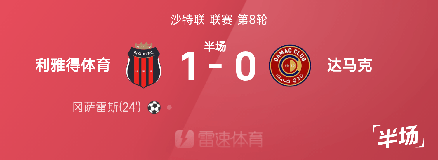พักครึ่งซาอุดิอาระเบีย: กอนซาเลซโหม่ง, ริยาดห์สปอร์ตชั่วคราว 1-0 ดามัค