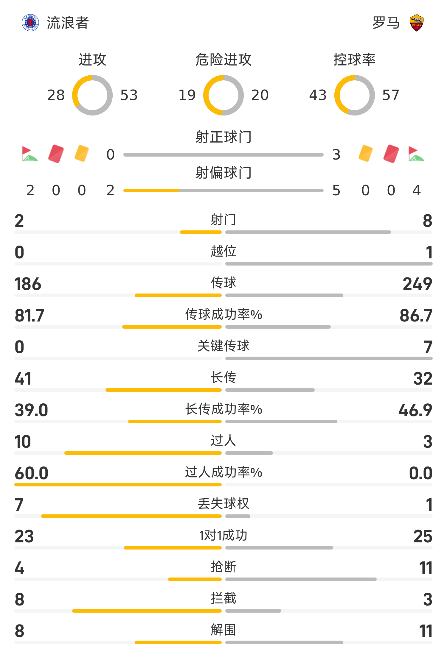 พักครึ่งยูโรป้าลีก: ซูเล่และเปเญกรินี่ทำประตู, เรนเจอร์ส 0-2 โรม่า