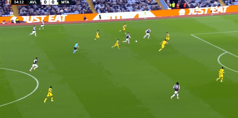 รายชื่อผู้เล่นตัวจริงของแอสตัน วิลล่า: 23-Martinez, 3-Lindelof, 4-Konsa, 14-Torres, 22-Mattson, 19-Sancho, 24-Onana, 29-Gaisan, 27-Rogers, 2 6-โบการ์ด, 17-มัลเลน