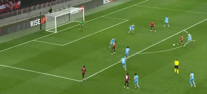 ตัวสำรองนีซ: 31-ดูปุย, 30-เซลาซอฟสกี้, 37-โอเพน, 36-แมนชูอุงก้า, 8-ซานซง, 22-เอ็นดอมเบเล่, 6-บูดูเว, 20-ลูช, 21-แยนสัน, 25-โจ, 49- เอนจีน