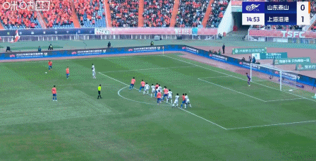 20' หวัง ต้าเล่ย์ สกัดลูกยิงของเลโอนาร์โด้ การยิงตามมาของ ไห่กัง เข้าประตูว่าง ได้รับการแก้ไขโดยกองหลังไท่ซาน