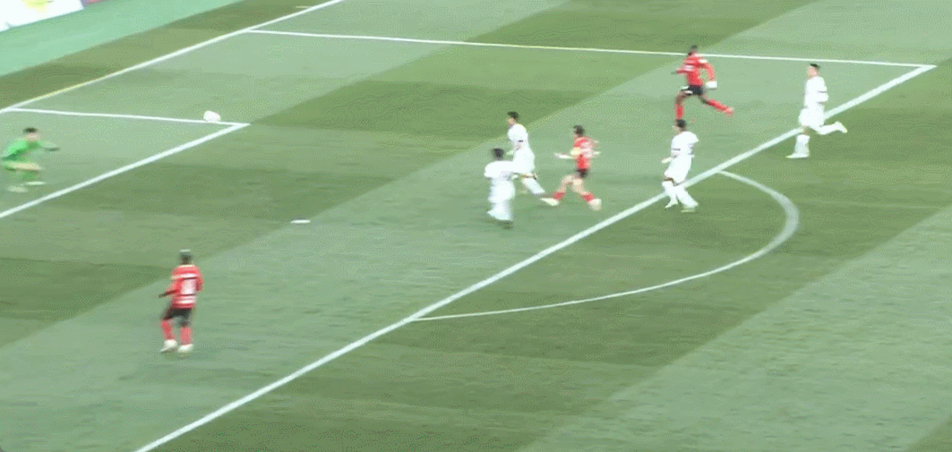 31’ ซาง อี้เฟิงบุกเข้าไปในโซนสามวินาทีเพื่อรับบอลจากเพื่อนร่วมทีมและผลักเข้ามุมไกล ลูกบอลสูงกว่าคานเล็กน้อย