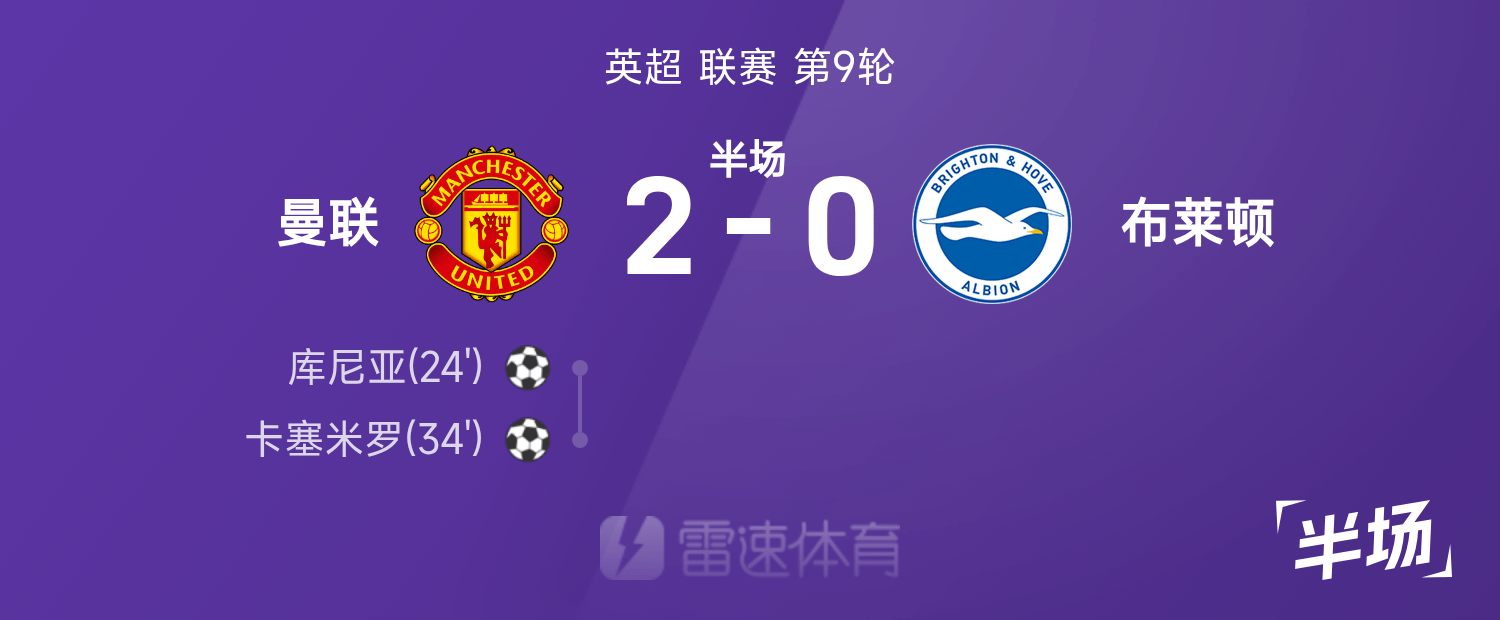 พักครึ่งพรีเมียร์ลีก: กุนญายิงประตูแรกให้ปีศาจแดง, แมนเชสเตอร์ ยูไนเต็ด ชั่วคราว 2-0 ไบรท์ตัน