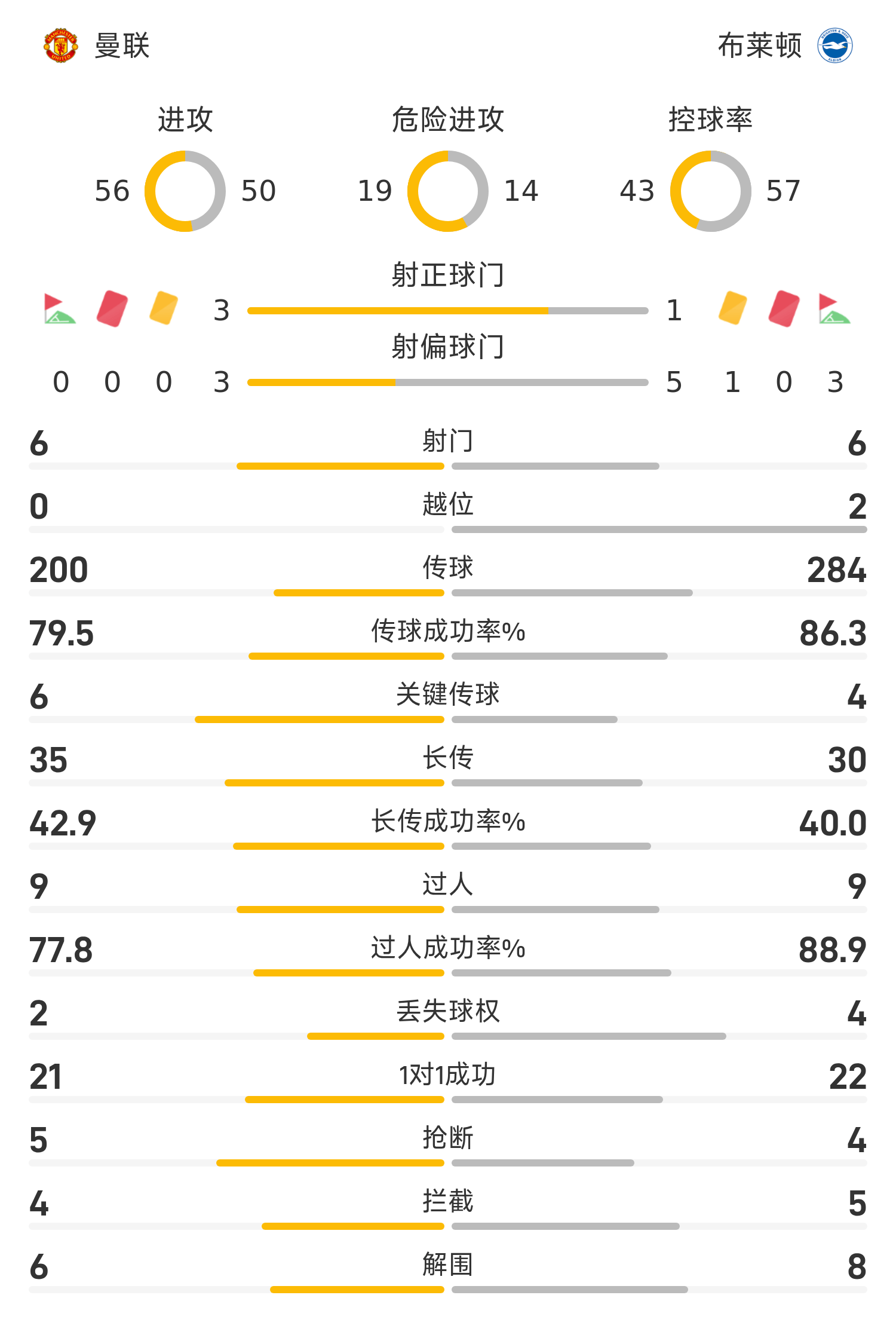 44' เอ็มเบโมส่งบอลพี่เลี้ยงเด็ก เชชโก้พลาดด้วยการวอลเลย์ด้วยเท้าซ้าย แมนเชสเตอร์ ยูไนเต็ด ยังคงเป็น 2-0 ไบรท์ตัน