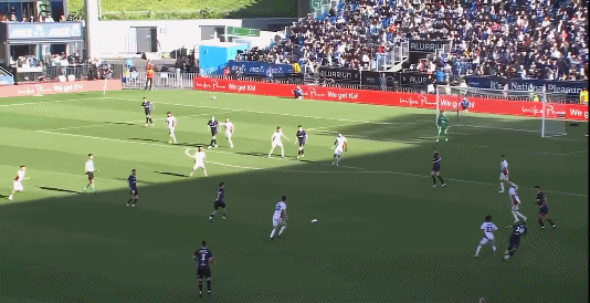 26’ ผู้รักษาประตูโอ๊คแลนด์ตีออกทันเวลาและช่วยชีวิตทีมด้วยการช่วยเหลือคู่ต่อสู้เพียงลำพัง